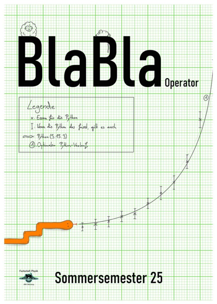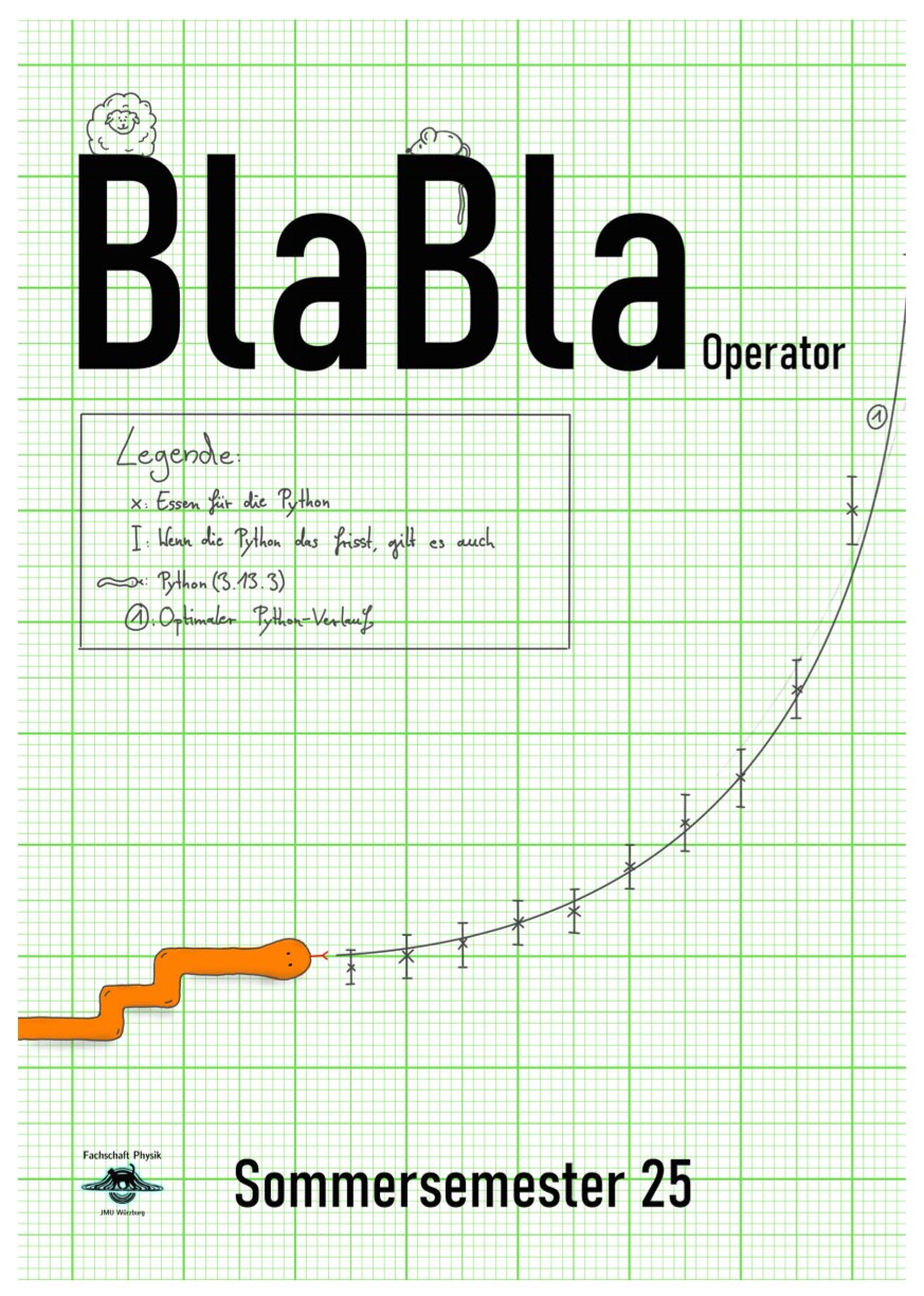 Vor der Covid-19 Pandemie erschein jedes Semester der BlaBla-Operator, welcher die Zeitung der Fachschaft Physik ist. Neben informativen und unterhaltsamen Artikeln von aktiven Mitgliedern der Fachschaft und einem Kreuzworträtzel finden sich hier viele für Physikstudis interessante Artikel.